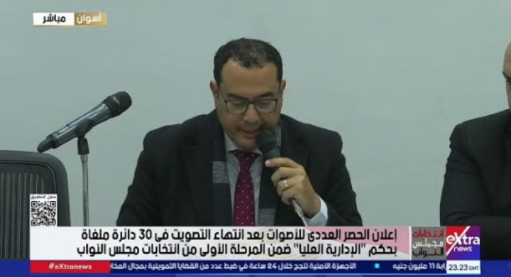 إعلان الحصر العددي للأصوات في الدوائر الملغاة باللجنة العامة بمحافظة أسوان