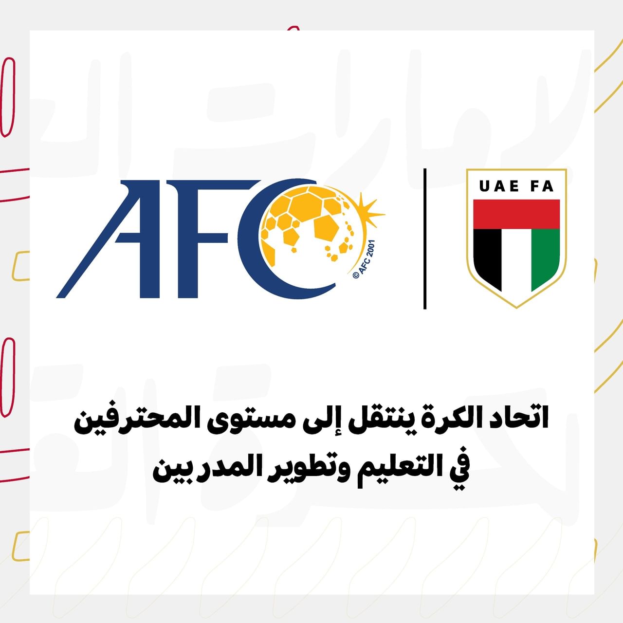 انتقل اتحاد الإمارات لكرة القدم من مستوى (A) إلى مستوى المحترفين في مجال التعليم وتطوير المدربين، وذلك في ضوء موافقة الاتحاد الآسيوي للعبة على هذه الخطوة.