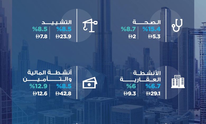 وقد شهد قطاع الأنشطة في مجال صحة الإنسان والعمل الاجتماعي النسبة الأكبر من النمو في الأشهر التسعة الأولى من 2025، حيث نما بنسبة 15.4% ليصل إجمالي قيمته المضافة 5.3 مليار درهم مساهماً بـ 1.5% من الناتج المحلي الإجمالي.