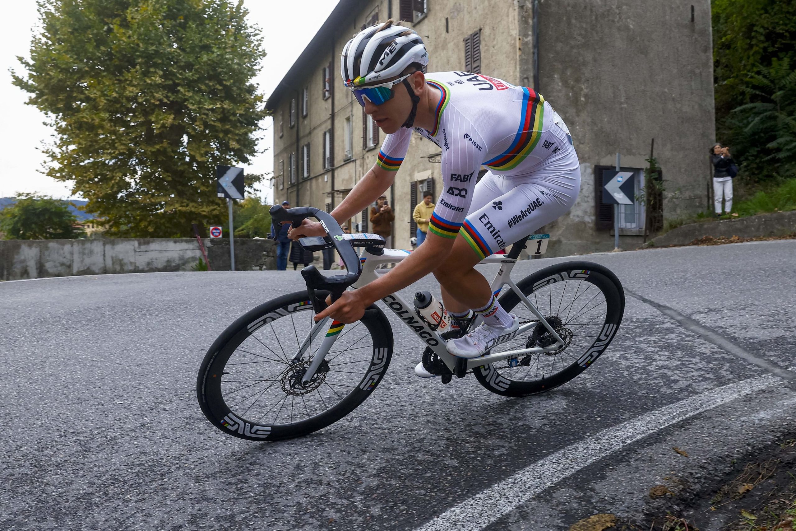 وبعد أن زاد الفارق في المراحل التالية، وصل إلى خط النهاية في كومو متقدمًا بفارق 3 دقائق و16 ثانية على إيفنبويل، محققًا فوزه الخامس والعشرين هذا الموسم، والذي يتضمن انتصارين في الكلاسيكيات الكبرى (لييج-باستون-لييج ولومبارديا)، وانتصارين في الطوافات الكبرى “جيرو دي إيطاليا وتور دو فرانس”، بالإضافة إلى بطولة العالم.