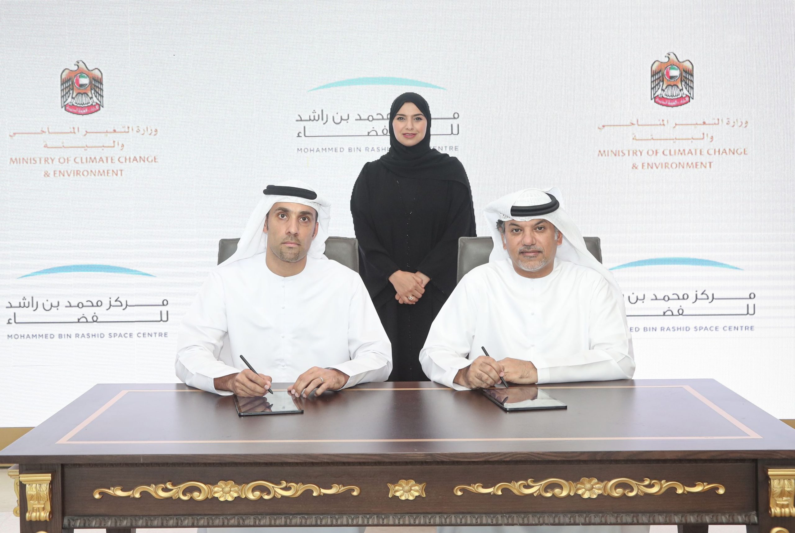 ووقع مذكرة التفاهم كل من سعادة محمد سعيد النعيمي وكيل وزارة التغير المناخي والبيئة، وسعادة سالم حميد المري، مدير عام مركز محمد بن راشد للفضاء.