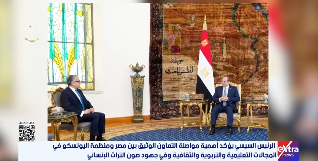 الرئيس السيسي يؤكد أن فوز د.خالد العناني يعد إنجازا تاريخي يعكس المكانة الرفيعة التي تحظي بها مصر