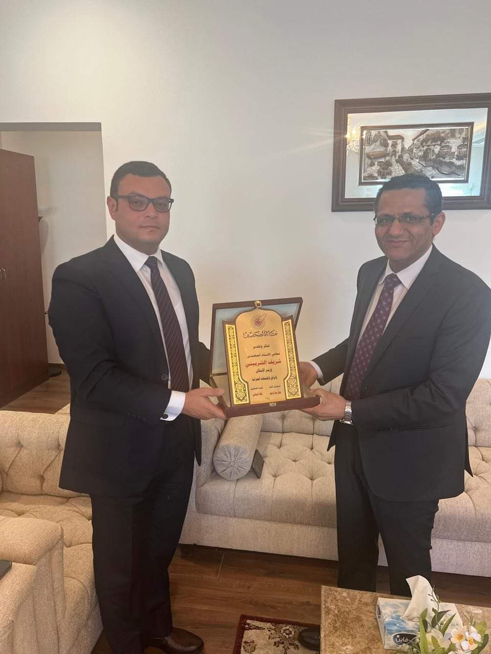 وقدم خالد البلشى، نقيب الصحفيين، درع تكريم للمهندس شريف الشربيني، وزير الإسكان والمرافق والمجتمعات العمرانية، تقديراً لجهوده الكبيرة والمتميزة والدؤوبة منذ توليه حقيبة الإسكان، وسعيه الحثيث لتحقيق مصلحة الوطن والمواطنين، تنفيذاً لتوجيهات الرئيس عبدالفتاح السيسى.