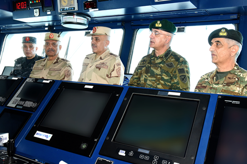 General Abdel Mageed Saqr, Commander-in-Chief of the Armed Forces and Minister of Defense and Military Production, witnessed the main phase of the joint exercise “Medusa-14”, in the presence of Lieutenant General Ahmed Khalifa, Chief of Staff of the Armed Forces; General Dimitrios Choupis, Chief of the Hellenic National Defense General Staff; Lieutenant General Emmanuel Theodorou, Commander of the Cypriot National Guard; Rear Admiral Mansour bin Saud Al-Juaid, Commander of the Royal Saudi Western Fleet; commanders of the main service branches; a number of senior commanders of the Egyptian Armed Forces and participating nations; military attachés; media representatives; and cadets from military academies and institutes.
