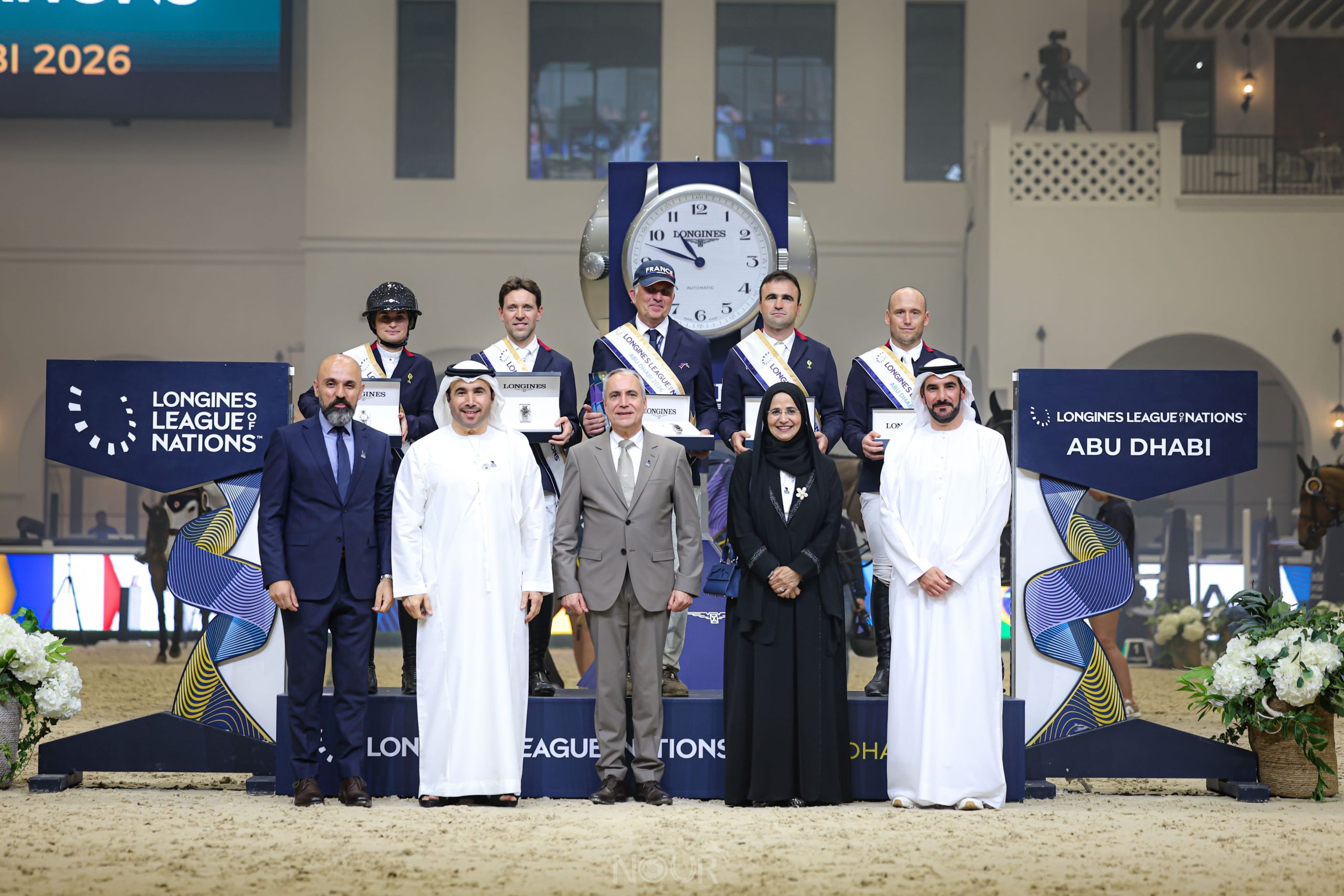 أحرز الفريق الفرنسي لقفز الحواجز كأس الجولة الأولى لدوري لونجين للأمم “أبوظبي 2026″، فيما حل الفريق الألماني وصيفاً، والفريق البرازيلي ثالثاً، وجاء الفريق الإماراتي في المركز الخامس.