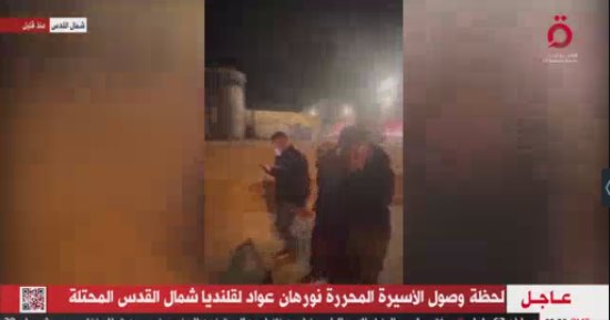 عرضت قناة القاهرة الإخبارية لحظة وصول الأسيرة المحررة نورهان عواد لقلنديا شمال القدس المحتلة