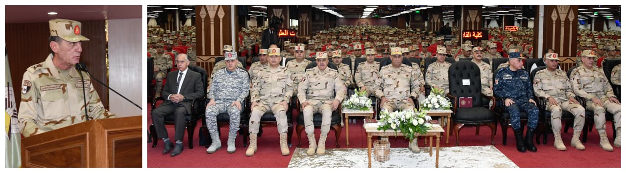 وكلية القادة والأركان والمعاهد العسكرية التخصصية وطلبة الأكاديمية العسكرية المصرية وطلبة الكليات العسكرية عبر تقنية الفيديو كونفرانس ، وذلك بحضور الفريق / أحمد خليفة رئيس أركان حرب القوات المسلحة