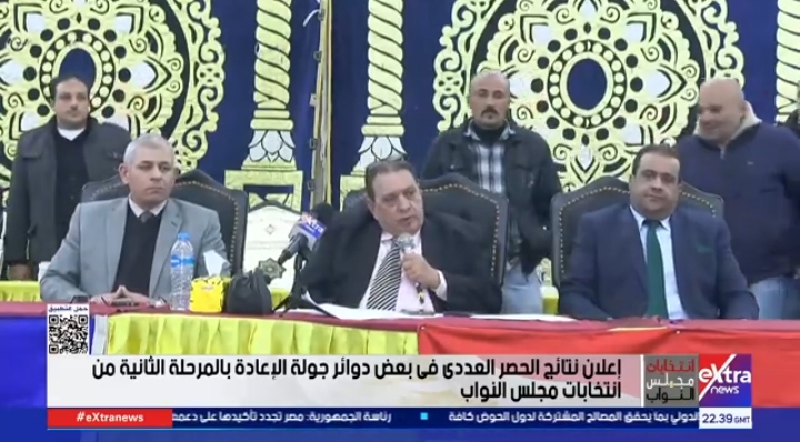 اللجنة العامة في مركز شرطة كفر سعد محافظة دمياط تعلن نتائج الحصر العددي للأصوات في جولة الإعادة للمرحلة الثانية