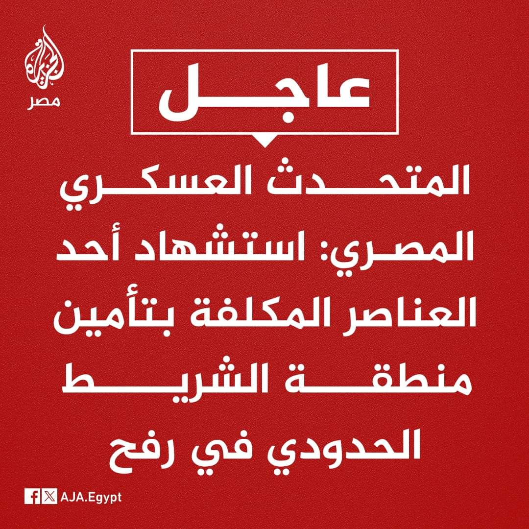اعلن المتحدث العسكري المصري استشهاد أحد العناصر المكلفة بتأمين منطقة الشريط الحدودي في رفح.