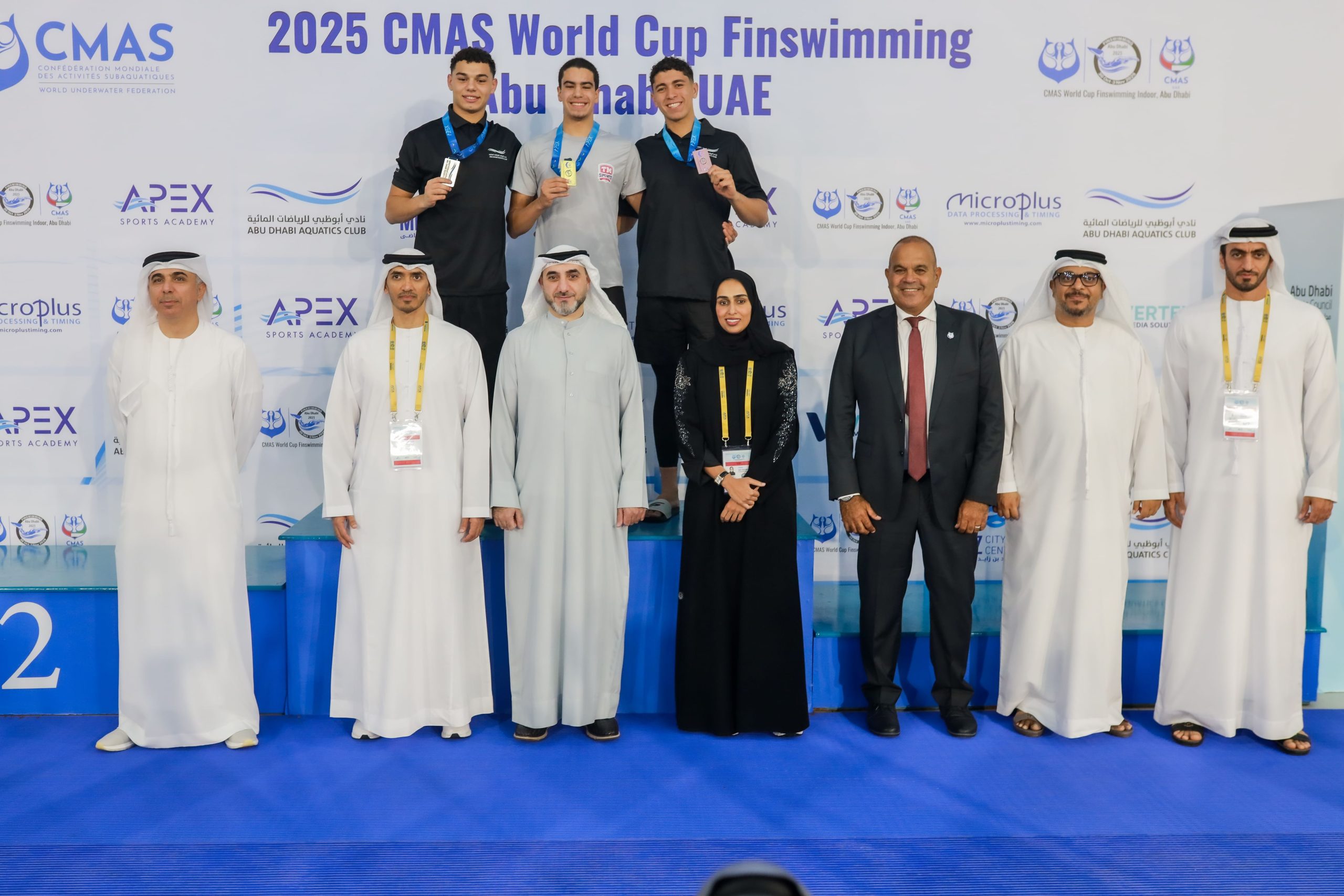 شهد الافتتاح وتوّج الفائزين عبدالله الوهيبي رئيس لجنة تسيير أعمال اتحاد الإمارات للرياضات المائية، وسامح الشاذلي عضو الاتحاد الدولي للرياضات المائية، رئيس الاتحاد المصري للغوص والإنقاذ، وأحمد الحوسني المدير التنفيذي لقطاع الخدمات المساندة في مجلس أبوظبي الرياضي، بحضور سعيد العاجل رئيس اتحاد الإمارات للرياضة للجميع، وسعادة العميد دكتور عمر محمد الخيال مدير إدارة اتحاد الشرطة الرياضي، وأليكساندروس ساركوس رئيس لجنة السباحة بالزعانف في الاتحاد الدولي للرياضات تحت المائية، وأعضاء مجلس إدارة نادي أبوظبي للرياضات المائية خويطر الظاهري، وأحمد خلفان الجهوري، وفاطمة العامري.