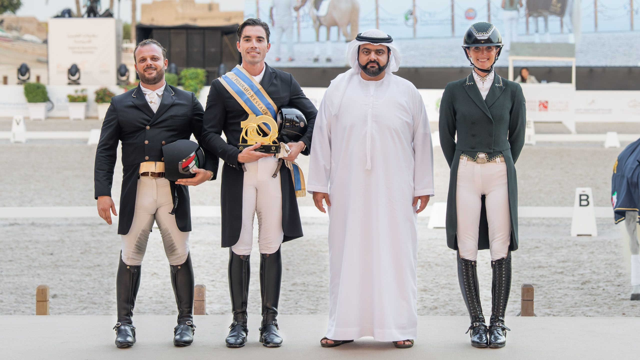 بينما حصد تيودورو لارا ديل ريو لقب جائزة الاتحاد الدولي للفروسية 2، على صهوة “مروق ادريا” ، ونال المركز الثاني روي دي سوزا على صهوة “غياو” لنادي دبي للفروسية والبولو.