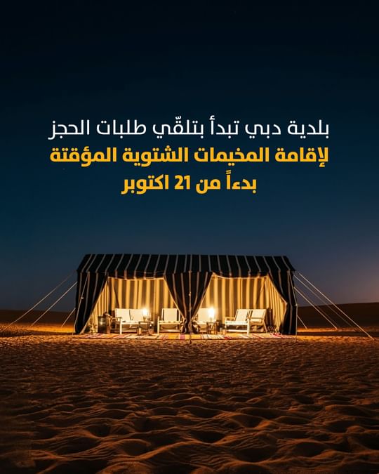 أعلنت بلدية دبي ، اليوم، إطلاق موسم التخييم الشتوي المؤقت في الإمارة بدءاً من 21 أكتوبر الجاري وحتى نهاية أبريل 2025، وحددت موقع المخيمات الشتوية المؤقتة لهذا العام في منطقة العوير.