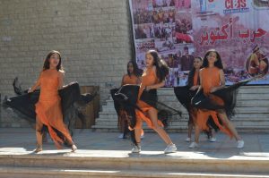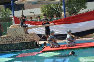 قدم الطلاب العرض العسكري ثم تابلوهات وطنية استعراضية تثير الحماسة في نفوس الحضور ،مع تدعيم العرض باختيار شخصية كان لها بصمة في انتصارات اكتوبر، او