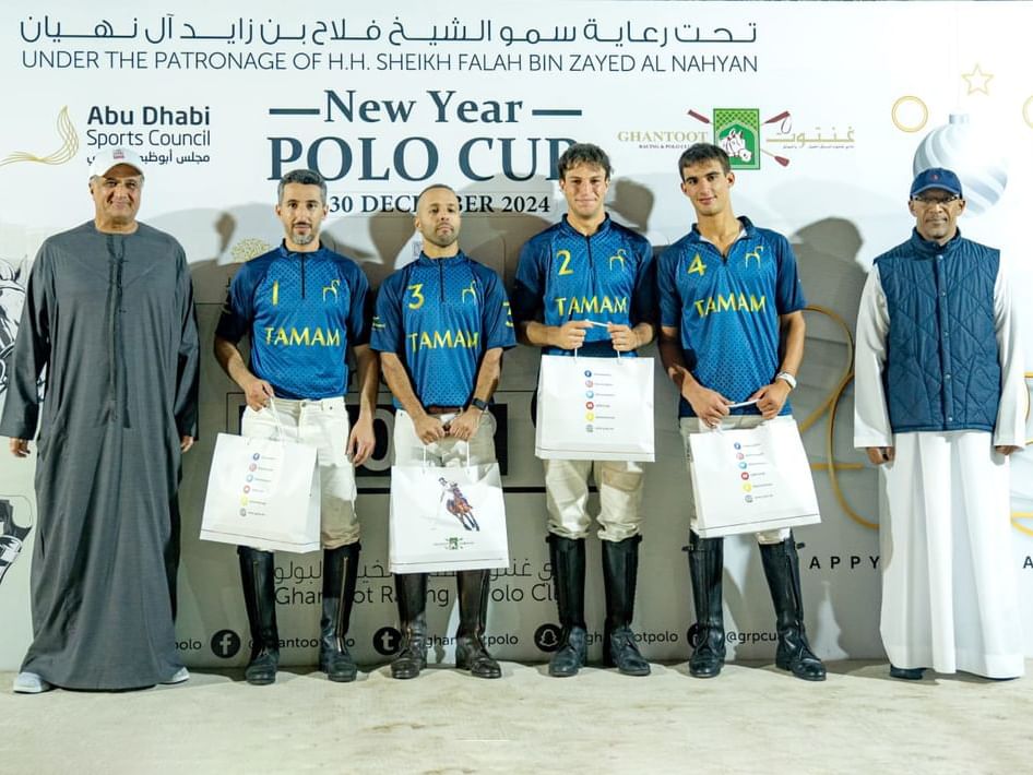 أحرز فريق “تمام بولو” لقب بطولة “العام الجديد” التي نظمها نادي غنتوت لسباق الخيل والبولو، برعاية سمو الشيخ فلاح بن زايد آل نهيان رئيس النادي، إثر فوزه على فريق أبوظبي بنتيجة 6 – 5 .