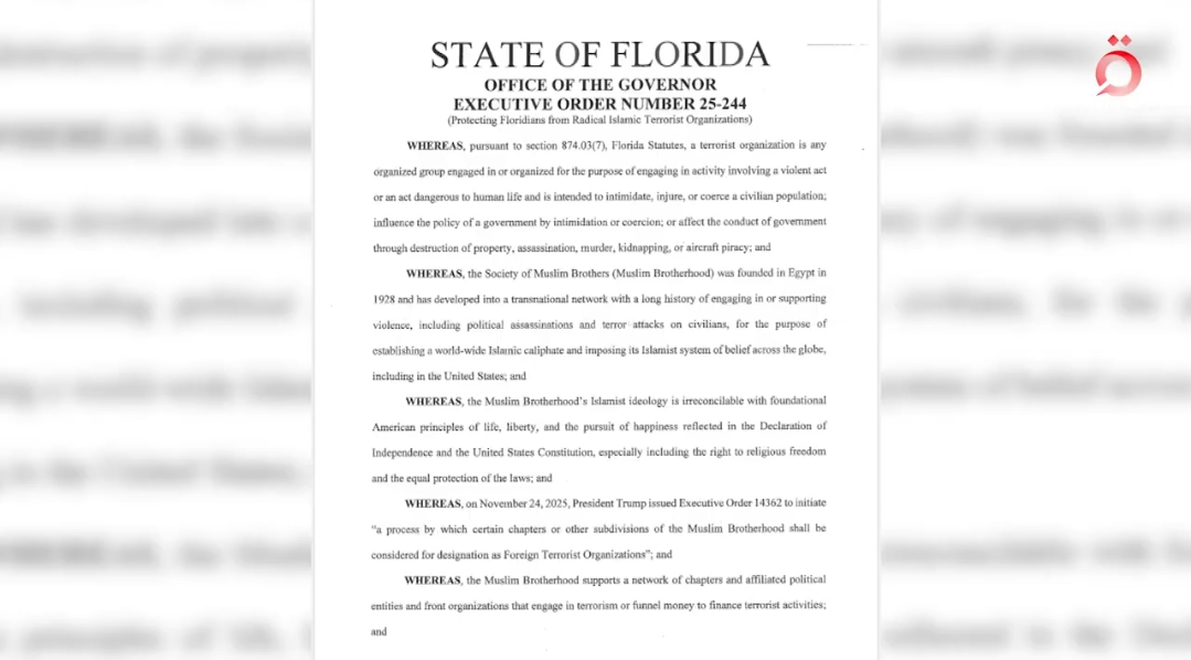 حاكم فلوريدا يضيق الخناق على “الإخوان” بقرار صادم