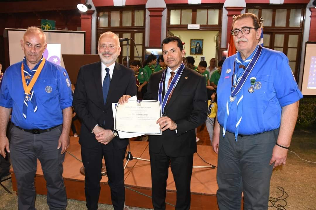 في الختام، قام معالي سفير اليونان بجمهورية مصر العربية بتقليد وزير الشباب والرياضة الدكتور أشرف صبحي؛ الوسام اليوناني “الفينكس الفضي” وهو أرفع االوسمة الكشفية اليونانية، وذلك لما يقدمه للحركة الكشفية العالمية، والمصرية واليونانية، بالإضافة إلى تكريم عدد من القيادات الكشفية المصرية البارزة وأيضاً تقديم كتاب تاريخ الكشافة اليونانية بالقاهرة على مدار 110 عام.