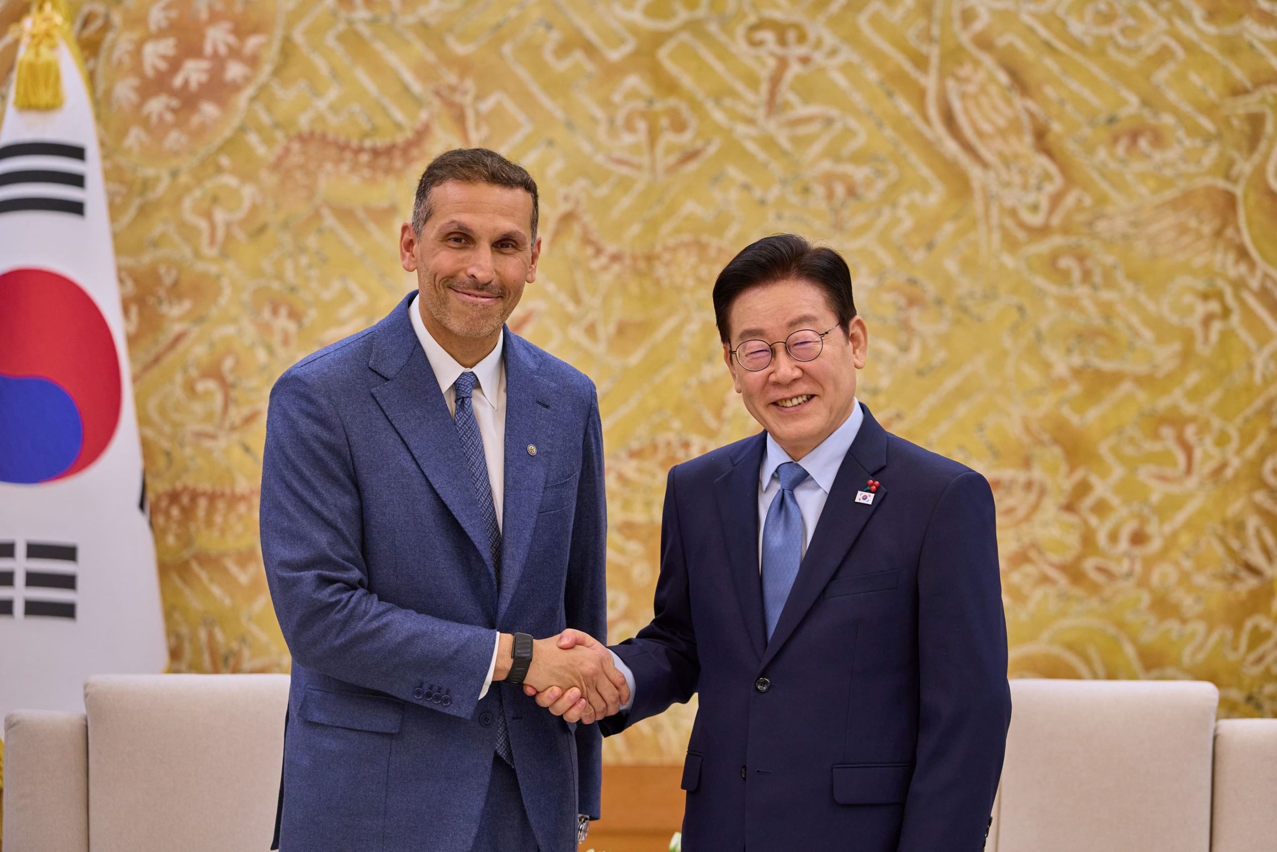التقى معالي خلدون خليفة المبارك رئيس جهاز الشؤون التنفيذية اليوم في إطار زيارة رسمية إلى جمهورية كوريا، فخامة لي جيه ميونغ رئيس جمهورية كوريا ونقل إليه تحيات صاحب السمو الشيخ محمد بن زايد آل نهيان، رئيس الدولة، حفظه الله.