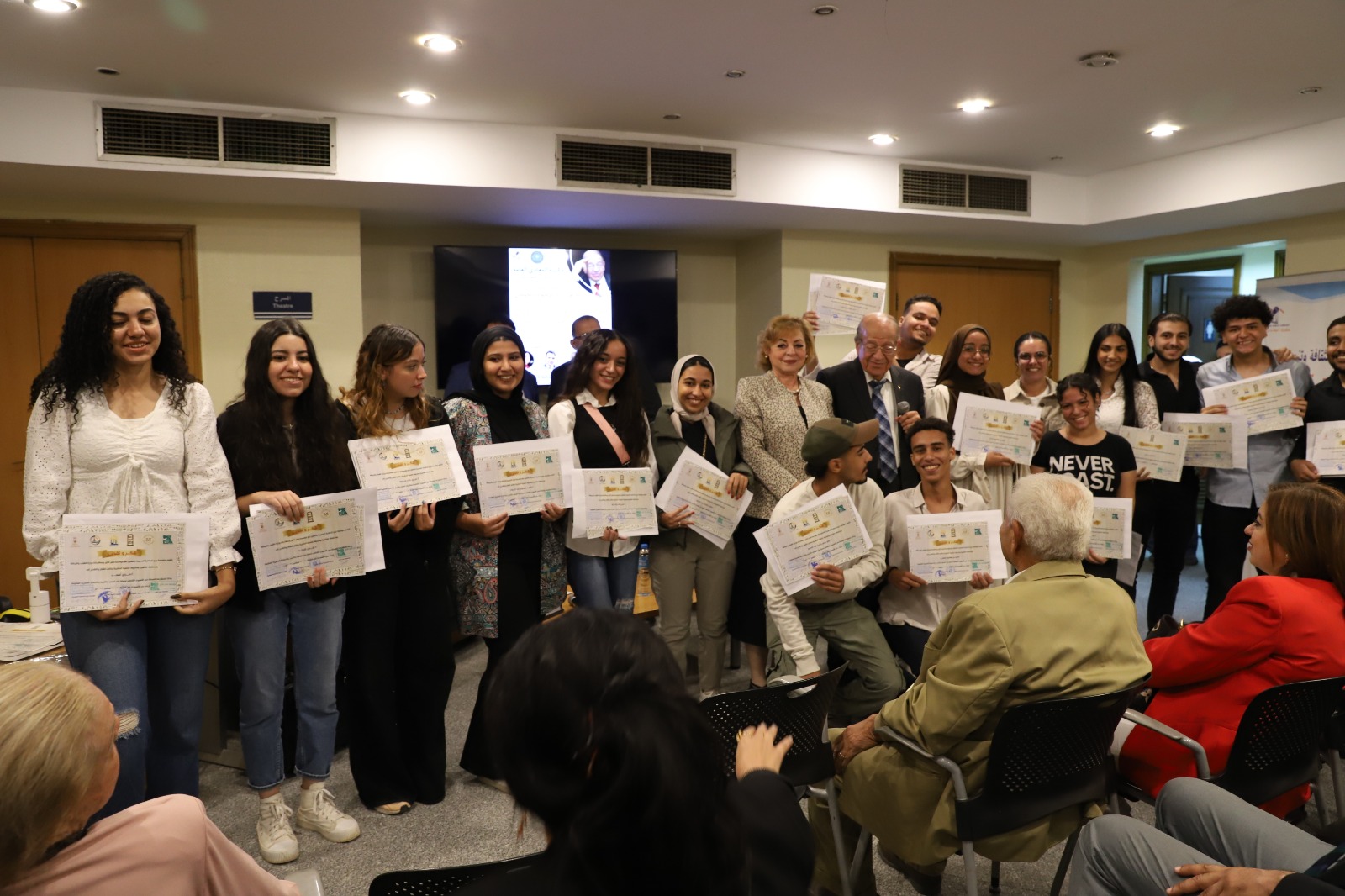 وجاء هذا التكريم تقديرا للأداء المتميز والفعال في فاعليات المؤسسة خلال الفترة الماضية وخاصة في الأسبوع الثقافي لأبناء حي الأسمرات في إطار مبادرة المؤسسة “إحنا مين” لحملة بناء الوعي بالتاريخ والحضارة المصرية والذي انعقد في الفترة من 7-10 سبتمبر بالمدينة الشبابية “Tanmeya club” بالأسمرات واستفاد منه حوالي 1000 طفل وشاب من أبناء الحي، والذي تم فيه تنفيذ عدداً كبيراً من الأنشطة التثقيفية والتوعوية بهدف بناء الوعي التاريخي والحضاري لأطفال وشباب حي الأسمرات، وكذلك غرس القيم الأخلاقية والحضارية المتوارثة من أجدادنا المصريين القدماء العظماء، وذلك من خلال إقامة متحف من المستنسخات لأهم القطع الآثرية (نسخ طبق الأصل 1/1)، وعمل عدداً من الورش التوعوية المُتميزة والتي حازت على اعجاب واستفادة الجميع، هذا بالإضافة إلى تنظيم احتفالية فنية يوم الافتتاح حضرها معالي محافظ القاهرة الدكتور/إبراهيم صابر، والمهندس/خالد صديق –رئيس مجلس إدارة صندوق التنمية الحضرية، وا/أشرف منصور -نائب محافظ القاهرة للمنطقة الجنوبية، وأ/حسن الغندور- مدير عام الدعم الفني لصندوق التنمية الحضرية، وعدداً كبيراً من قيادات المحافظة والصندوق، كما حضر الاحتفالية د/عماد البناني وزير الرياضة الأسبق ورئيس الاتحاد العربي والمصري للرياضة للجميع، وأ/سامح فهيم –مدير مديرية التضامن الاجتماعي، ومسؤولين من وزارت الشباب والرياضة والآثار والثقافة.