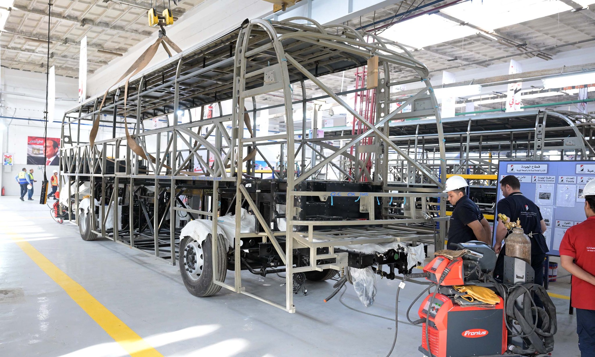 وعقب حضوره فعاليات الاحتفالية، قام رئيس الوزراء بجولة فى أرجاء مصنع الأتوبيسات، لتفقد ما تم من أعمال تطوير، كما تابع المراحل والعمليات الإنتاجية المختلفة وصولا إلى المنتج النهائي، مستمعاً إلى شرح تفصيلي حول مراحل الانتاج، وما يتم على المنتج من عمليات لاختبارات الجودة والكفاءة وفقا للمعايير العالمية المطبقة فى هذا الشأن، وذلك خلال مراحل التصنيع المختلفة، وتمت الإشارة إلى أن الطاقة الإنتاجية الحالية للمصنع تصل إلى 300 أتوبيس سنويا، ومن المستهدف أن تصل إلى 1500 أتوبيس سنويا بحلول عام 2027، وذلك بنسبة مكون محلي تصل إلى 50% في مرحلتها الأولى على أن تصل لاحقا إلى 60-70%، وتمت الاشارة خلال الشرح، إلى انه يتم التصدير إلى عدد من الدول العربية.