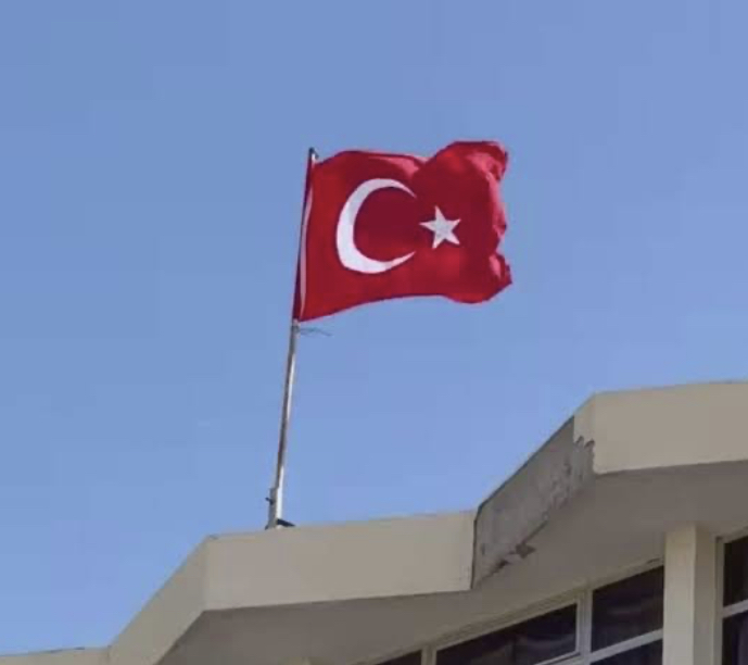 رفع العلم التركي فوق السفارة التركية في العاصمة السورية دمشق