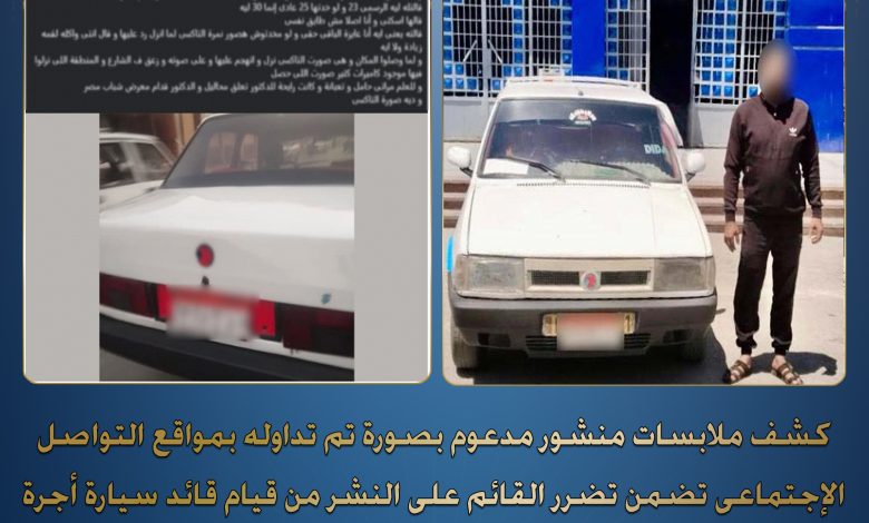 فى إطار كشف ملابسات منشور مدعوم بصورة تم تداوله بمواقع التواصل الإجتماعى تضمن تضرر القائم على النشر من قيام قائد سيارة أجرة بتحصيل تعريفة ركوب أزيد من المقررة مقابل توصيل زوجته وحال قيامها بمعاتبته تعدى عليها لفظياً ببنى سويف.