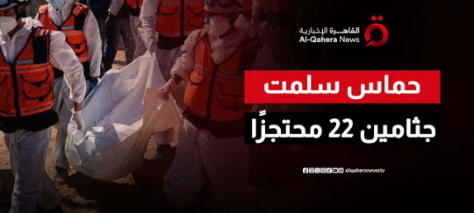 سلّمت حركة حماس حتى الآن جثامين 22 محتجزًا إسرائيليًا إلى اللجنة الدولية للصليب الأحمر، فيما تبقى 6 جثامين أخرى قيد التسليم بعدما سلمت جثمان محتجز خلال الساعات الماضية