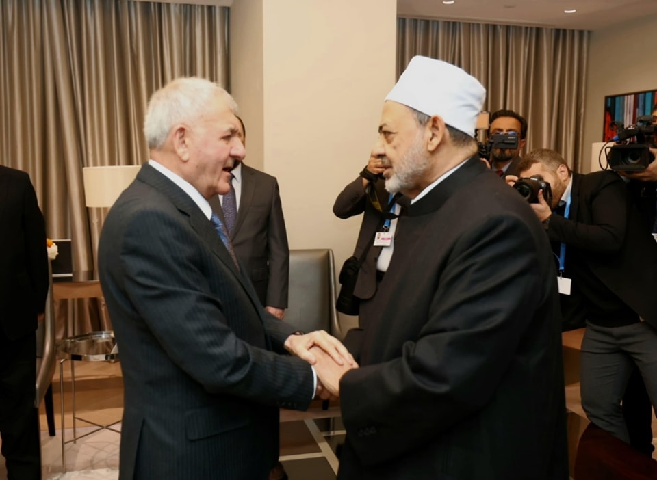 التقى فضيلة الإمام الأكبر أ. د. أحمد الطيب، شيخ الأزهر الشريف، رئيس مجلس حكماء المسلمين، السيد الرئيس عبد اللطيف رشيد، رئيس #العراق؛ لبحث سبل تعزيز العلاقة بين الطرفين.
