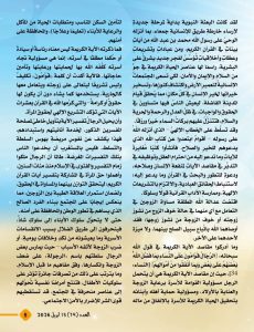 ويركّز ملف العدد على إعادة قراءة آية القوامة بوصفها منظومة رعاية لا رئاسة، ويربط بين العنف الأسري وتداعياته النفسية على الأطفال، وما ينعكس عنه من اضطرابات سلوكية تهدد الاستقرار المجتمعي. كما يدعم العدد أطروحته بتنوعٍ عبر قراءات اجتماعية وقانونية وتفسيرية تُترجم الفكرة إلى مسارات إصلاح عملية تشمل الوعي قبل الزواج، وتطوير المناهج، وضبط الصياغات القانونية لمنع التعسف، وتفعيل آليات حماية الأسرة والكرامة الإنسانية.