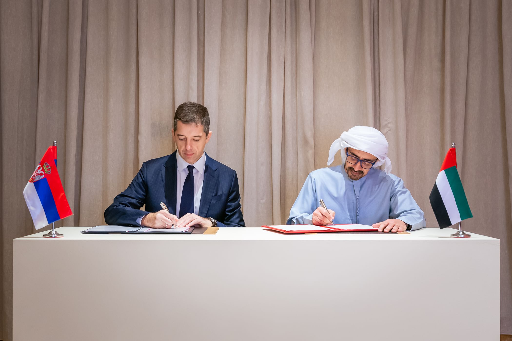 وفي السياق ذاته، وقع سمو الشيخ عبدالله بن زايد آل نهيان، نائب رئيس مجلس الوزراء وزير الخارجية، ومعالي ماركو دجوريتش، وزير خارجية جمهورية صربيا مذكرة تفاهم بشأن المشاورات السياسية بين البلدين.