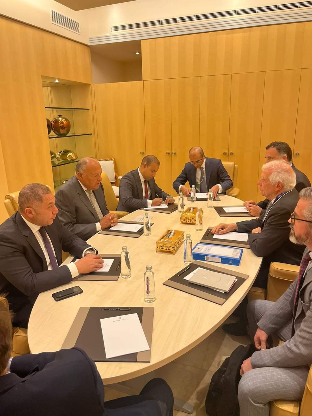وأردف المتحدث باسم الخارجية، بأن الأزمة في غزة استحوذت على الشق الأكبر من اللقاء، حيث تناول الجانبان بشكل مستفيض مستجدات الأوضاع الأمنية والإنسانية في القطاع، وقد حرص الوزير شكري والممثل الأعلى على تبادل التقييمات ونتائج اتصالاتهما مع مختلف الأطراف الإقليمية والدولية لإنهاء الحرب في غزة ووضع نهاية للمأساة الإنسانية التي يعيشها سكان القطاع. كما حرص السيد “بوريل” على التعرف من الوزير شكري على تطورات المفاوضات الجارية بين حماس واسرائيل لتحقيق الوقف الفوري لإطلاق النار وتبادل المحتجزين والرهائن، فضلاً عن تعزيز نفاذ المساعدات الإنسانية إلى داخل القطاع.