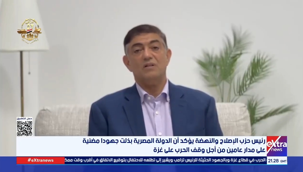 غرفة الأخبار| رئيس حزب الإصلاح والنهضة يؤكد أن الدولة المصرية بذلت جهودا مضنية على مدار عامين من أجل وقف الحرب على غزة