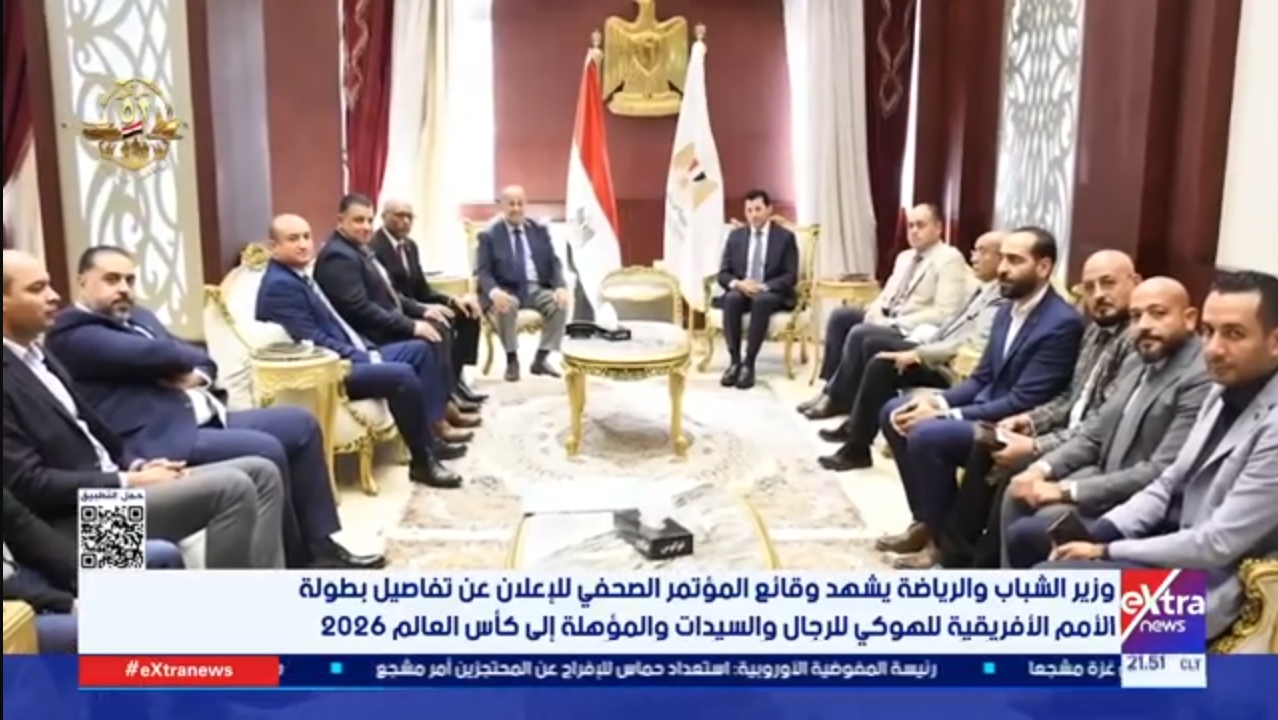 غرفة الأخبار| وزير الشباب والرياضة يشهد وقائع المؤتمر الصحفي للإعلان عن تفاصيل بطولة الأمم الأفريقية للهوكي للرجال والسيدات والمؤهلة إلى كأس العالم 2026