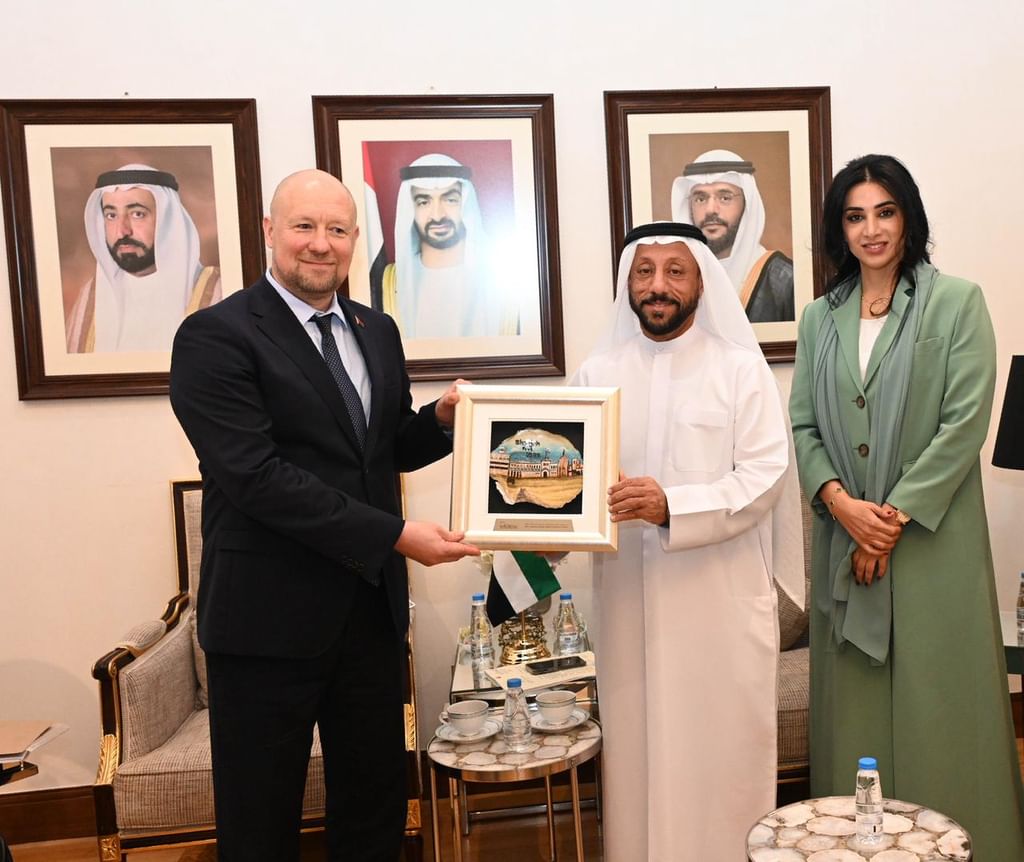 جاء ذلك خلال لقاء سعادة عبدالله سلطان العويس رئيس مجلس إدارة غرفة تجارة وصناعة الشارقة سعادة إيغور بيلي سفير جمهورية بيلاروسيا لدى الدولة والسيد ألياكسي جالديبين القنصل العام لجمهورية بيلاروسيا في دبي ووفد دبلوماسي بيلاروسي بمقر الغرفة بحضور عبدالعزيز الشامسي مساعد المدير العام لقطاع الاتصال والأعمال.
