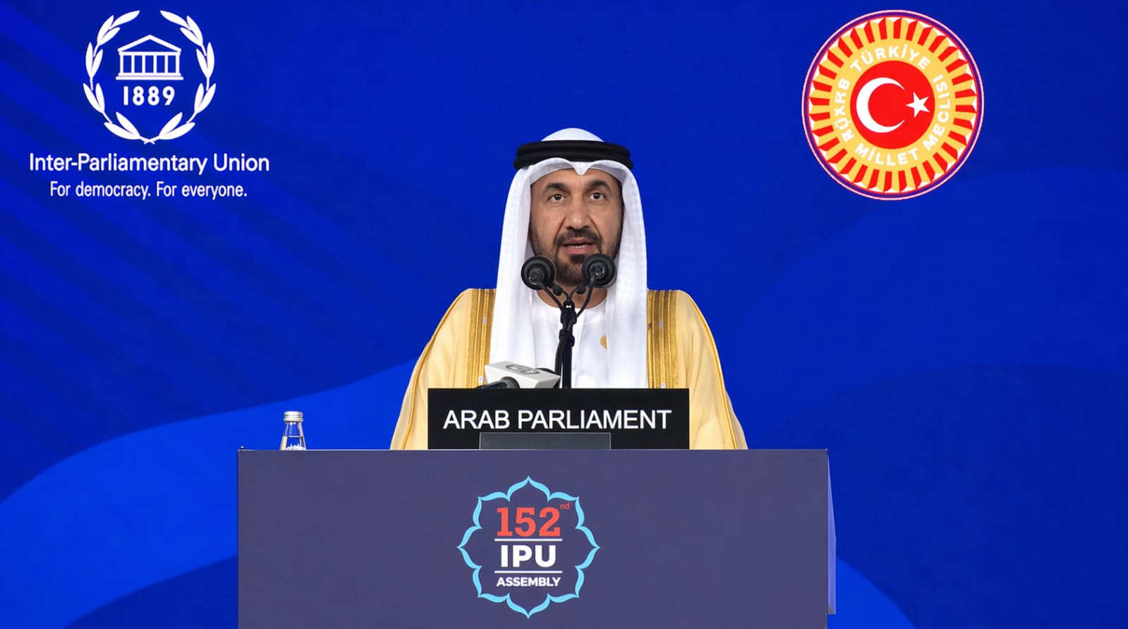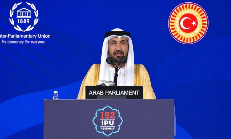 جاء ذلك في الكلمة الرئيسية التي ألقاها رئيس البرلمان العربي أمام الجمعية العامة الـ 152 للاتحاد البرلماني الدولي المنعقدة في مدينة إسطنبول التركية.