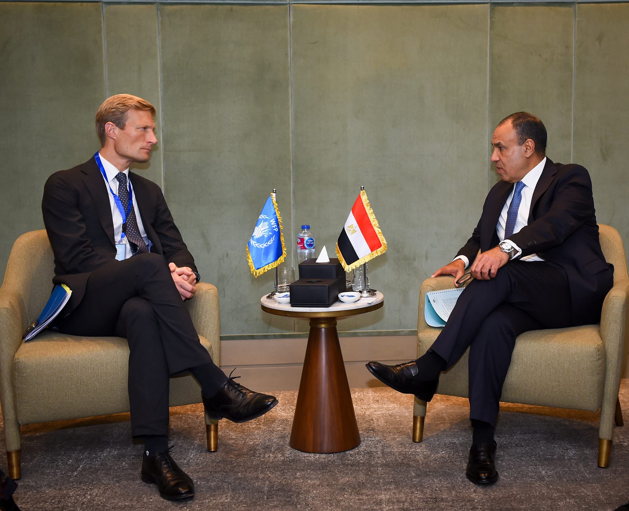 التقي د. بدر عبد العاطي، وزير الخارجية والهجرة، بالسيد “كارل سكاو” نائب المديرة التنفيذية ومدير عمليات برنامج الغذاء العالمي يوم ٢ ديسمبر على هامش إنعقاد “مؤتمر القاهرة الوزاري لتعزيز الاستجابة الإنسانية في غزة”. أعرب السيد وزير الخارجية عن تقدير مصر لدور البرنامج الهام في دعم جهود الإغاثة الإنسانية حول العالم، مؤكداً استعداد مصر لتقديم كافة التسهيلات لدعم عمل البرنامج.