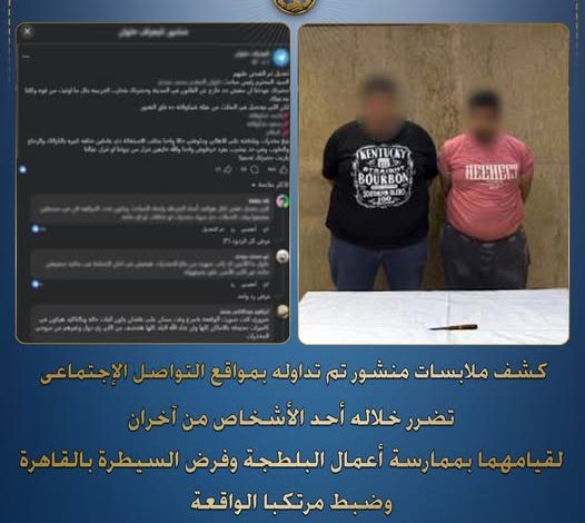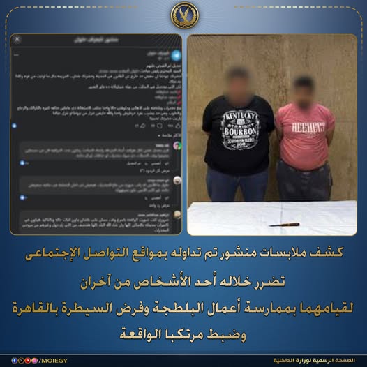 فى إطار كشف ملابسات منشور تم تداوله بمواقع التواصل الإجتماعى تضرر خلاله أحد الأشخاص من آخران لقيامهما بممارسة أعمال البلطجة وفرض السيطرة بالمنطقة محل سكنهما بحلوان بالقاهرة.