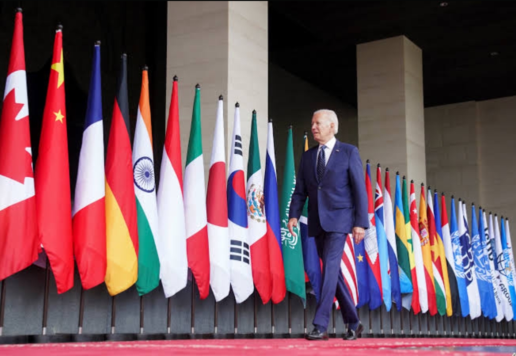 لحظة وصول الرئيس الأمريكي جو بايدن إلى مقر انعقاد قمة مجموعة العشرين