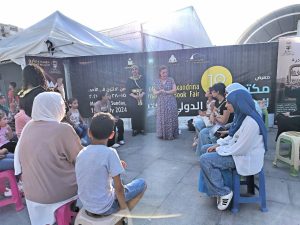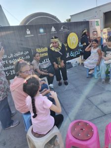 هذا بالإضافة إلى الورش التي يقدمها ا .ربيع زين مسؤول المكتبة المتنقلة لمصر الخير وهي ورش حكي وقراءة وتلوين وفن عرائس.