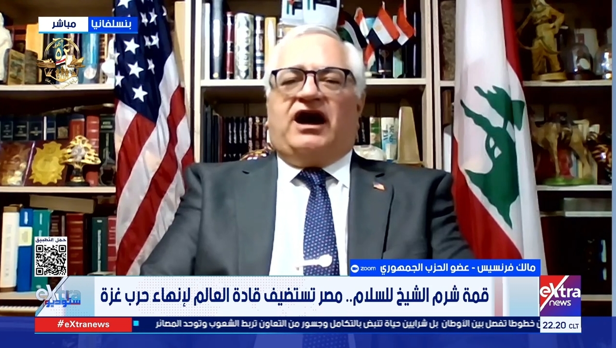 مالك فرنسيس عضو الحزب الجمهوري الأمريكي: قمة شرم الشيخ للسلام صفحة جديدة في تاريخ المنطقة العربية والإسلامية