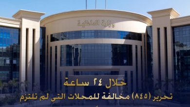 خلال 24 ساعة عن تحرير (845) مخالفة للمحلات والمنشآت التى لم تلتزم بقرار الغلق تنفيذاً لقرار مجلس الوزراء