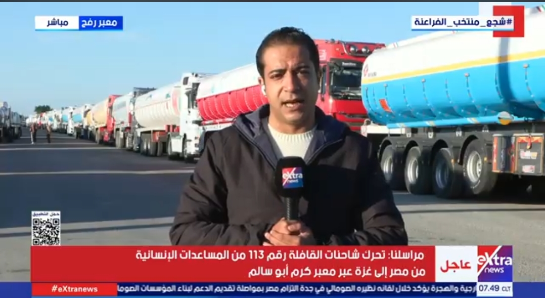 مراسلنا: تحرك شاحنات القافلة 113 من المساعدات الإنسانية لدخولها من مصر إلى غزة عبر كرم أبو سالم