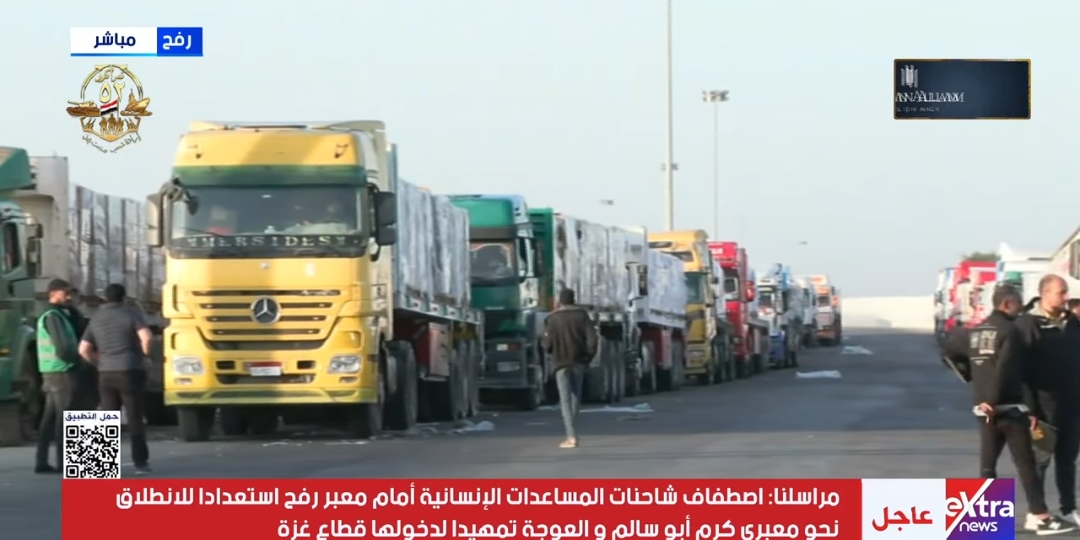 مراسلنا: تواصل الدفع بشاحنات المساعدات الإنسانية إلى قطاع غزة.. مراسلنا ينقل الصور من معبر رفح