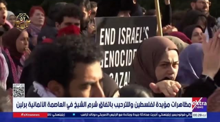 مظاهرات مؤيدة لفلسطين وللترحيب باتفاق شرم الشيخ في العاصمة الألمانية برلين