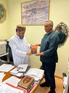 وأهدى ممثل مؤسسة رسالة السلام كتاب “رسالة الاسلام” باللغة الفرنسية وكذلك كتاب “ومضات” الجزء السابع لامام المسجد الكبير .