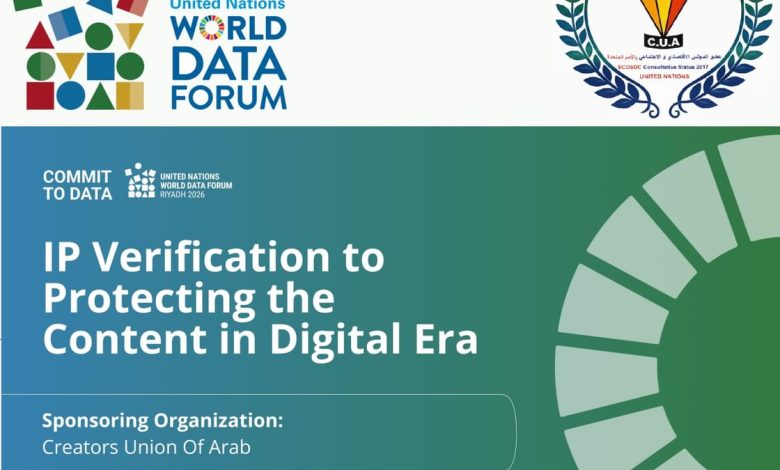اعتمد منتدى الأمم المتحدة العالمي للبيانات منصة اتحاد المبدعين العرب لحماية الملكية الفكرية في الفضاء الرقمي IPV (Intellectual Property Verification) .