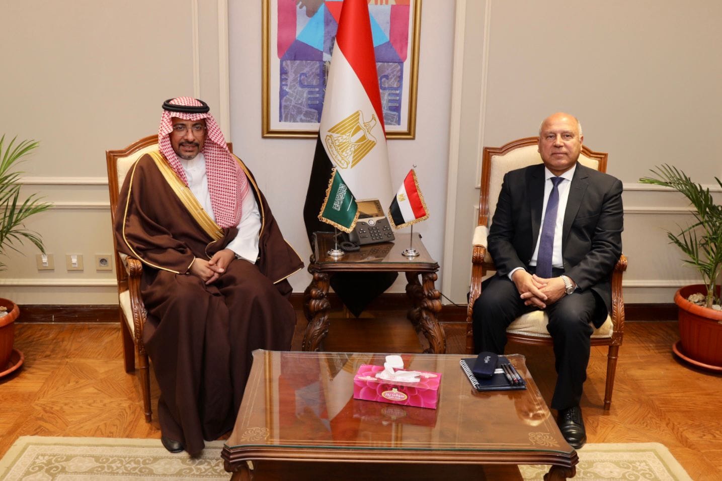 نائب رئيس مجلس الوزراء للتنمية الصناعية وزير الصناعة والنقل ووزير الصناعة والثروة المعدنية السعودي يبحثان سبل تعزيز أطر التعاون والتكامل الصناعي بين مصر والمملكة السعودية
