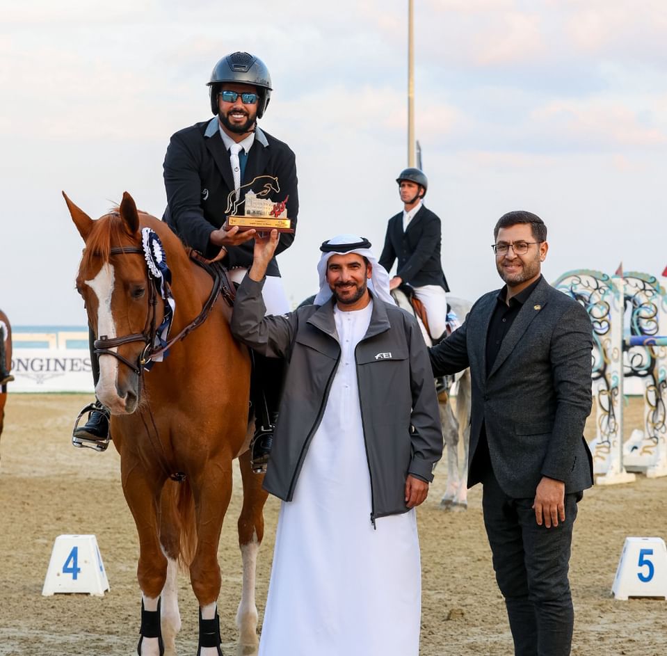 وقفز الفارس محمد غانم الهاجري إلى صدارة المنافسة الدولية من فئة الثلاث نجوم على جائزة ماجستيك بمواصفات الجولة الواحدة على حواجز بلغ ارتفاعها 135 سم تنافس فيها 36 فارساً وفارسة وأنهى 9 فرسان الجولة دون خطأ، وتقدمهم على منصة التتويج محمد غانم الهاجري بصحبة الفرس “ليليلونكا اس تي دبليو” وأكمل معها الجولة في زمن سريع بلغ 56.91 ثانية، وتوّج بجائزة المركز الثاني الفارس الاسباني هوغو الفاريز أمارو بصحبة الفرس “ابيزا دانشات كار” وأنهى الجولة في 59.67 ثانية، وحاز جائزة المركز الثالث الفارس حميد عبد الله المهيري وأكمل الجولة مع الفرس “أرجنتينا دو كريسكر زد” بزمن 59.92 ثانية.