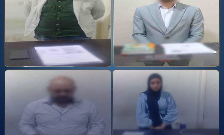 عقب تقنين الإجراءات أمكن ضبط القائمين على إدارة تلك الشركات (15 شخص) وبحوزتهم (جوازات سفر للمواطنين وصور ضوئية منها – صور لعقود وتأشيرات وطلبات توظيف للعمل بالخارج – أكلاشيهات – إعلانات خاصة بالشركات كروت دعاية – دفاتر بيانات راغبى السفر للعمل بالخارج – عدد من أجهزة الكمبيوتر وهواتف المحمول “بفحصهم تبين إحتوائهم على أدلة تؤكد نشاطهم الإجرامى”)..وبمواجهتهم أقروا بنشاطهم الإجرامى على النحو المشار إليه.