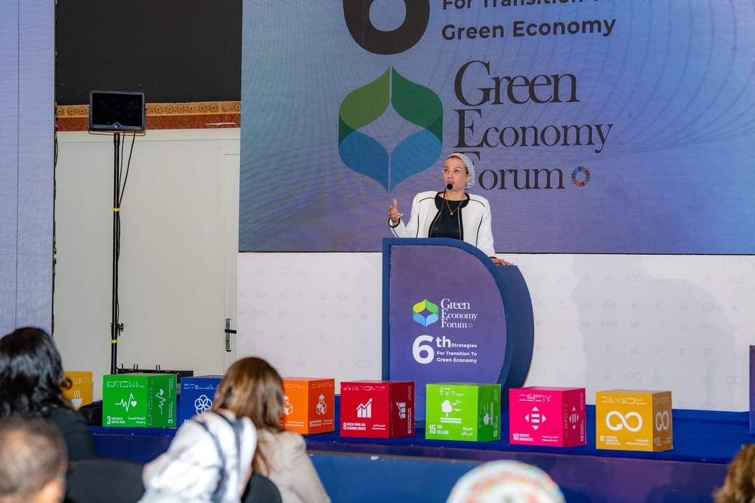 وتحدثت وزيرة البيئة عن خطوات الدولة المصرية وما سيتم اتخاذه خلال الفترة القادمة في ملف الاقتصاد الأخضر، بدءا من تغيير لغة الحوار لقطاع البيئة وإعادة هيكلة القطاع البيئي، بتوجيهات واضحة من فخامة رئيس الجمهورية الرئيس عبد الفتاح السيسي، من خلال ٤ محاور يتمثل المحور الأول فيها الحد من التلوث وكيفية التعامل مع تلوث الهواء والمياه والبحار والتربة، والمحور الثاني وهو استدامة الموارد الطبيعية، والمحور الثالث وهو كيفية التعامل مع الملفات والقضايا العالمية والتي لم نكن السبب فيها وتؤثر بصورة مباشرة على حياتنا مثل قضية تغير المناخ والتنوع البيولوجي، والمحور الرابع وهو خلق وتهيئة المناخ الداعم.