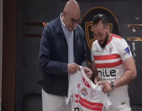 هشام نصر يكرم المشجع الزملكاوي محمد طاهر داخل الزمالك